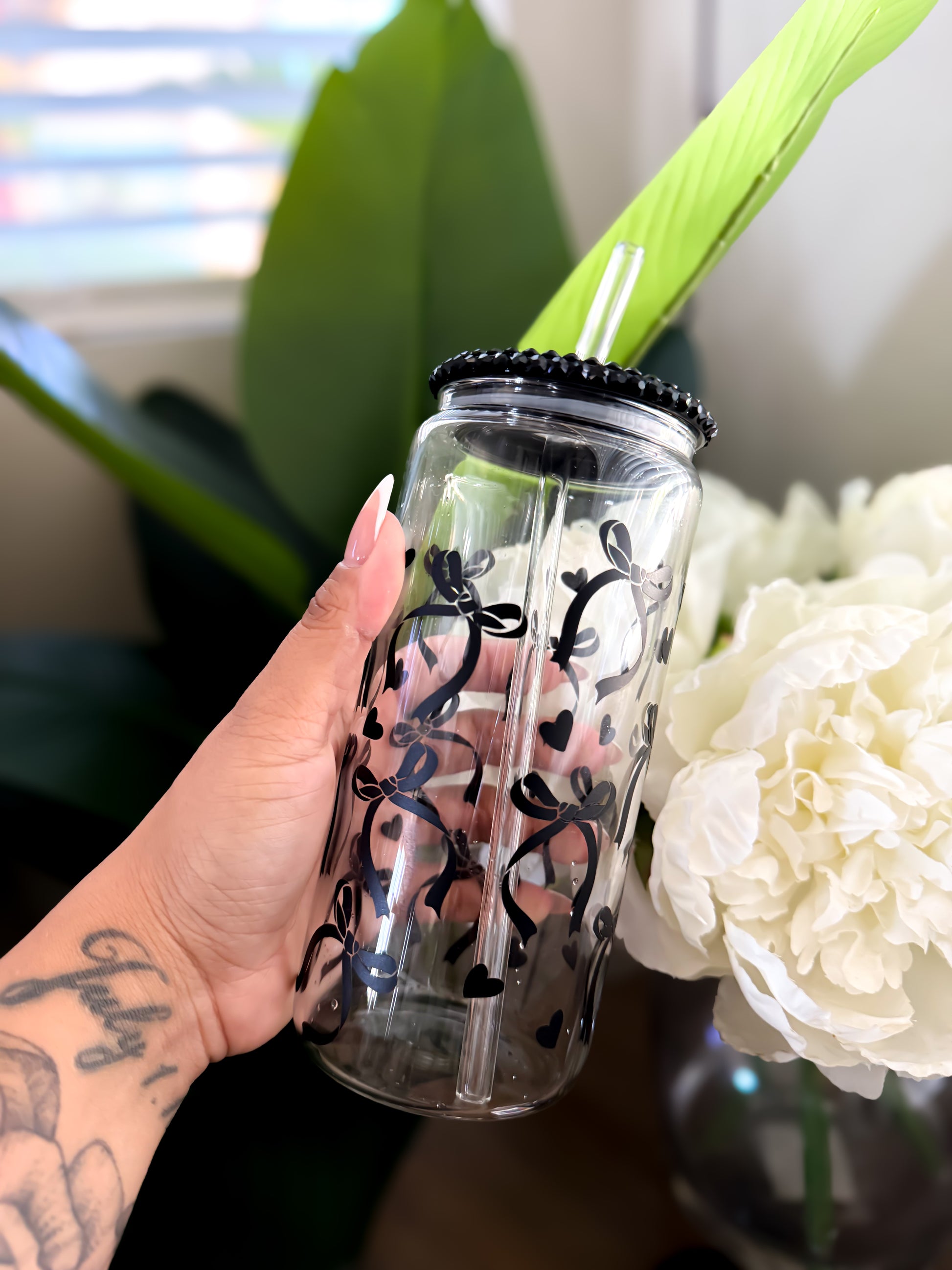 Elevate your drinkware collection with our Black Bow Glass tumblers. Available in 16oz or 20oz, each tumbler comes with a stunning rhinestone lid for added glamour. Perfect for any occasion, whether you're feeling girly or simply looking for a touch of elegance.