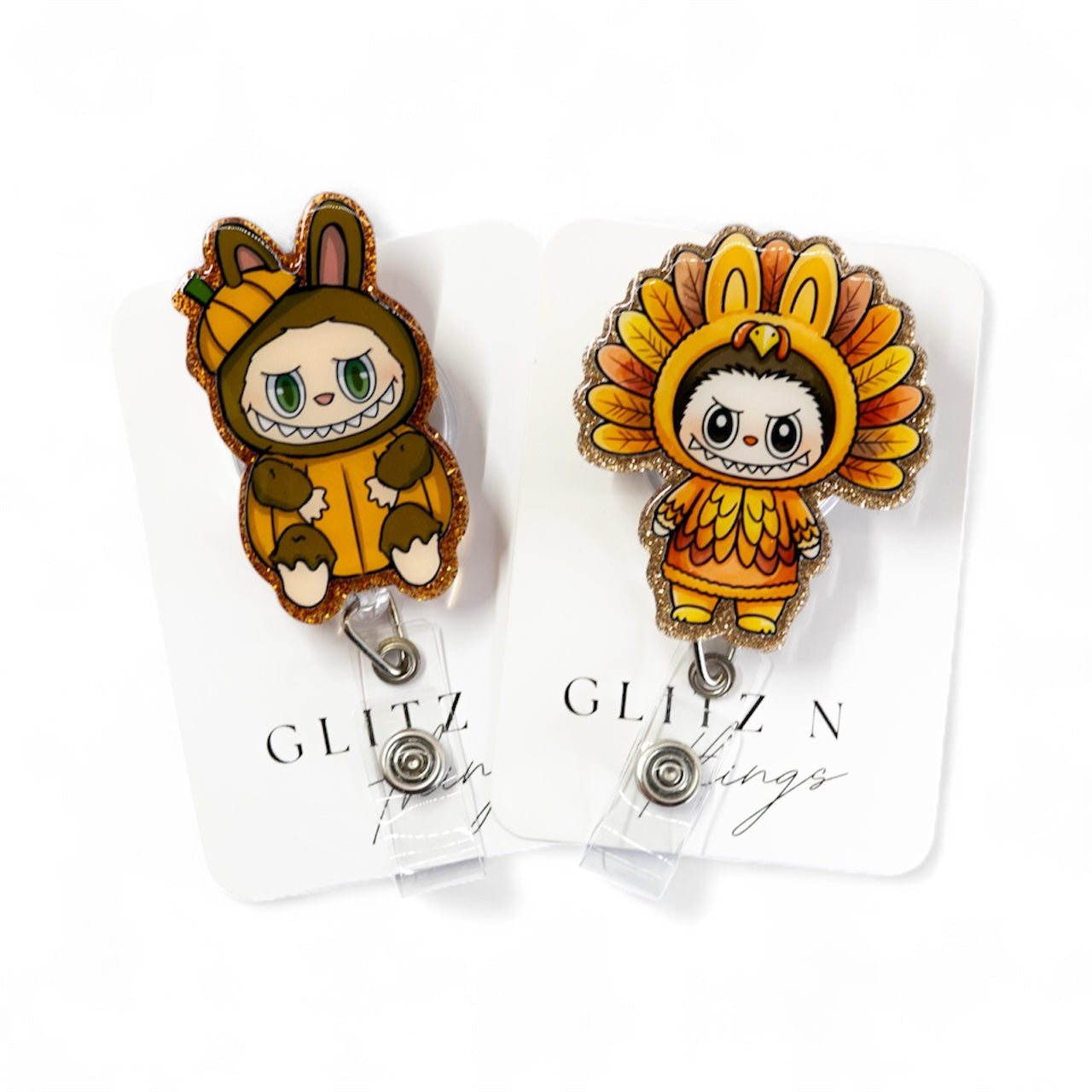 Introducing Fall Labubu, the perfect accessory for the autumn season. Made with festive Thanksgiving colors, this labubu badge reel is both stylish and practical. Show off your seasonal spirit and keep your ID secure with Fall Labubu.