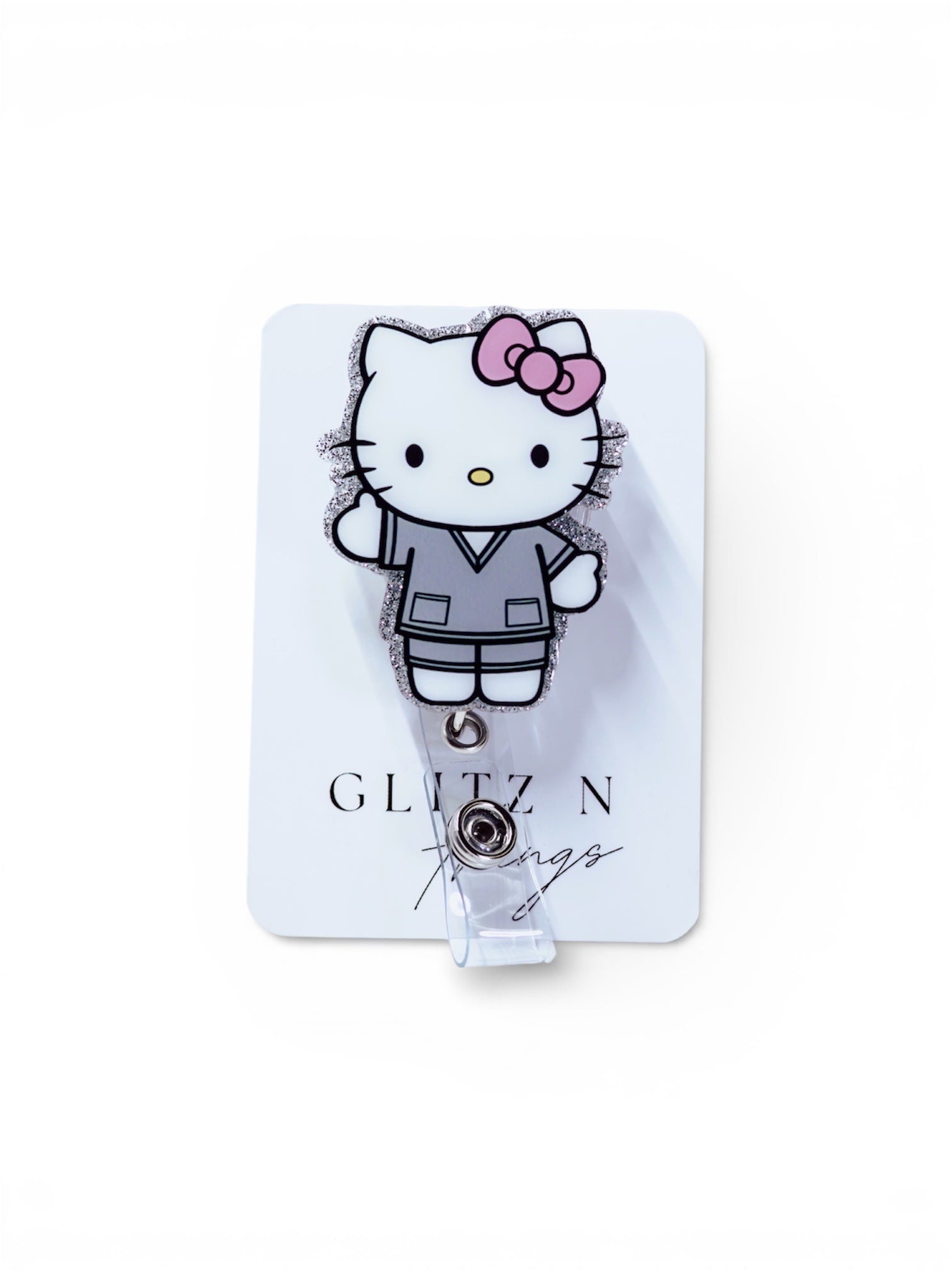 The Kitty Scrubs badge reel brings character and functionality to your healthcare uniform. Featuring Hello Kitty dressed in authentic medical scrubs, this accessory combines professional appeal with beloved charm. The integrated badge reel securely holds your ID for quick access throughout your shift. Designed for nurses, medical professionals, and healthcare enthusiasts who want to express personality while maintaining workplace professionalism. A practical gift that celebrates dedication to the nursing profession with timeless character style.