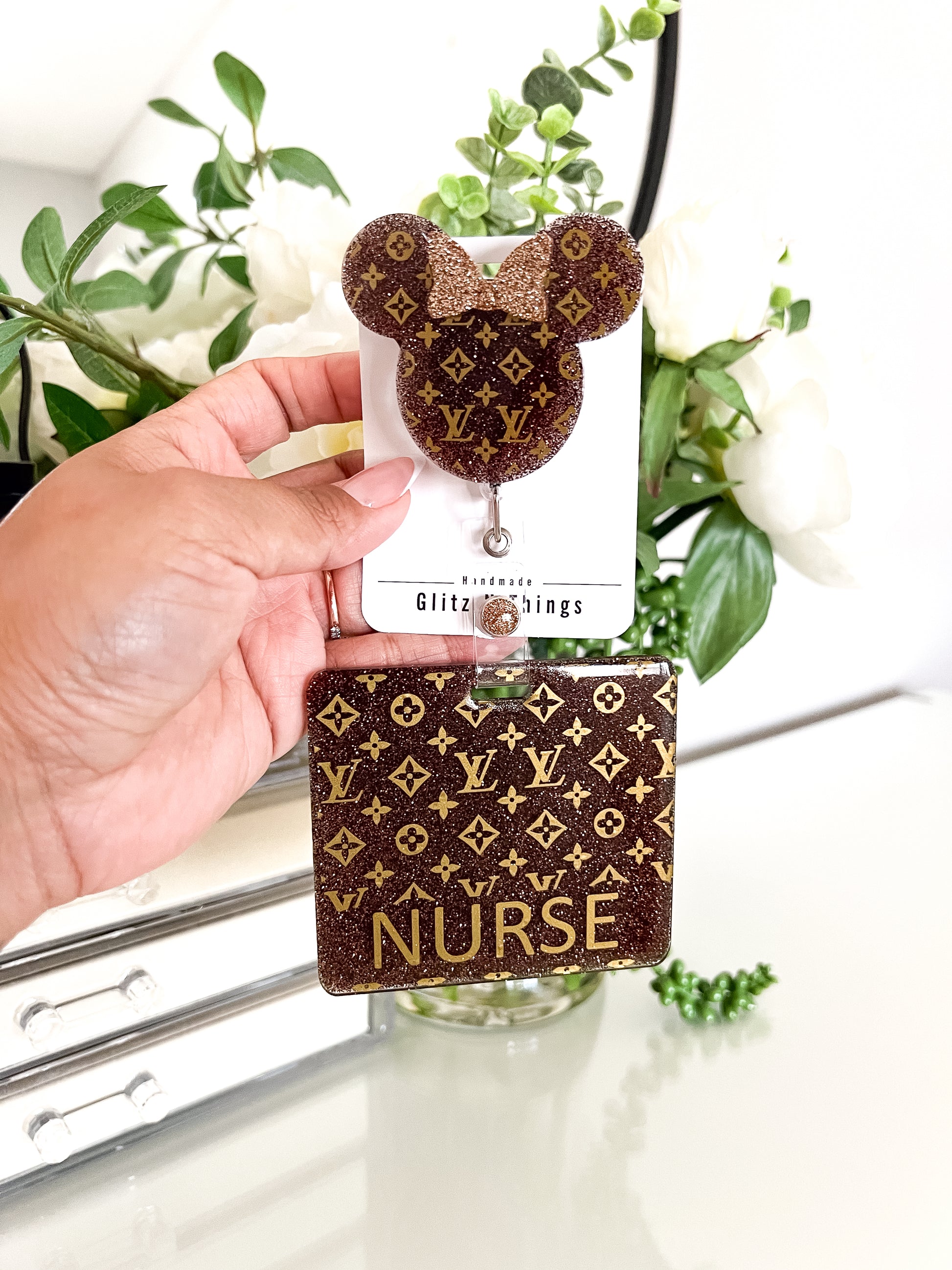 The LV Ear Badge Reel is an elegant and playful accessory, inspired by the iconic Loui Vuitton design and the beloved minnie mouse character. Add a touch of luxury and whimsy to your office attire with this eye-catching badge reel.
