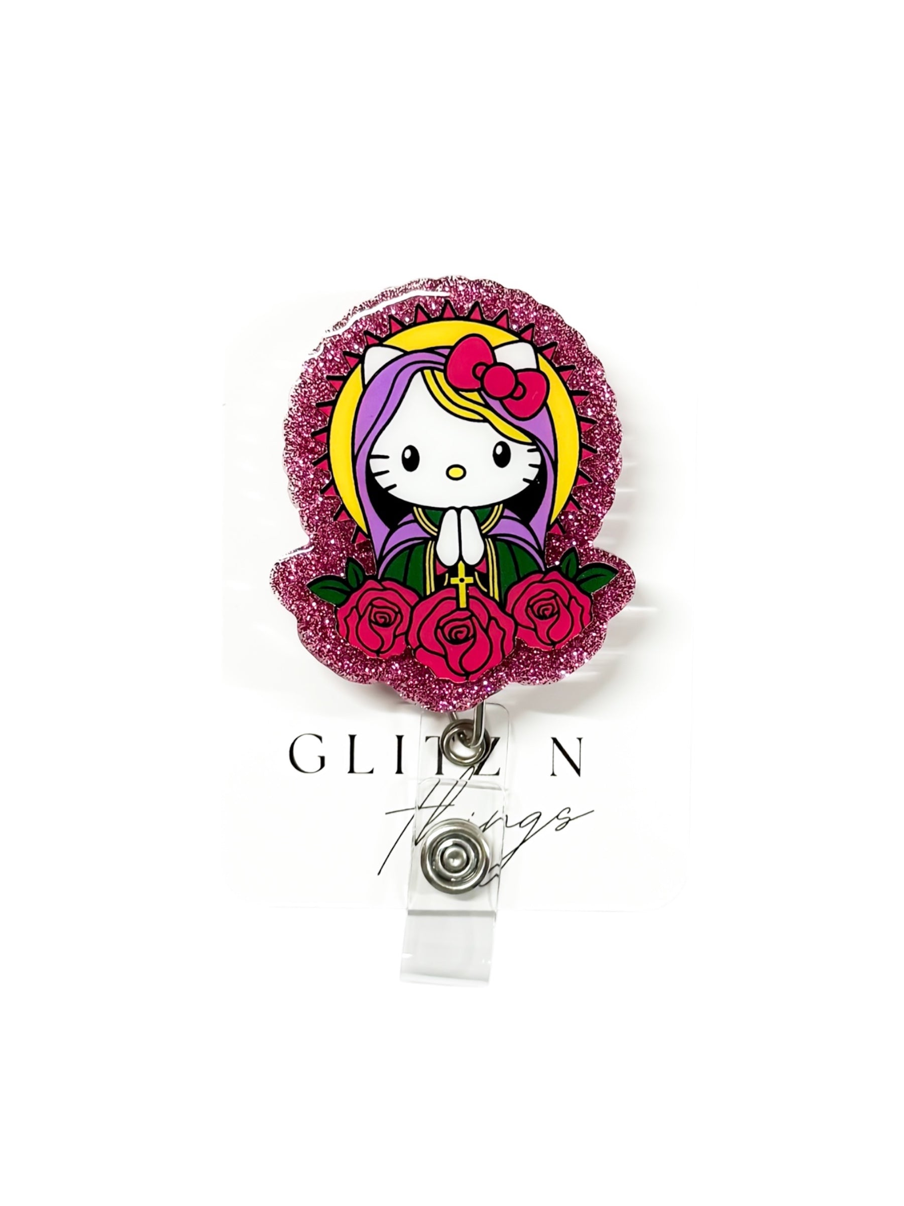 Introducing Mary Kitty, the perfect combination of spirituality and cuteness. This badge reel features a beautiful Virgin Mary design alongside the beloved Hello Kitty character. Show off your devotion and your love for all things adorable with Mary Kitty.